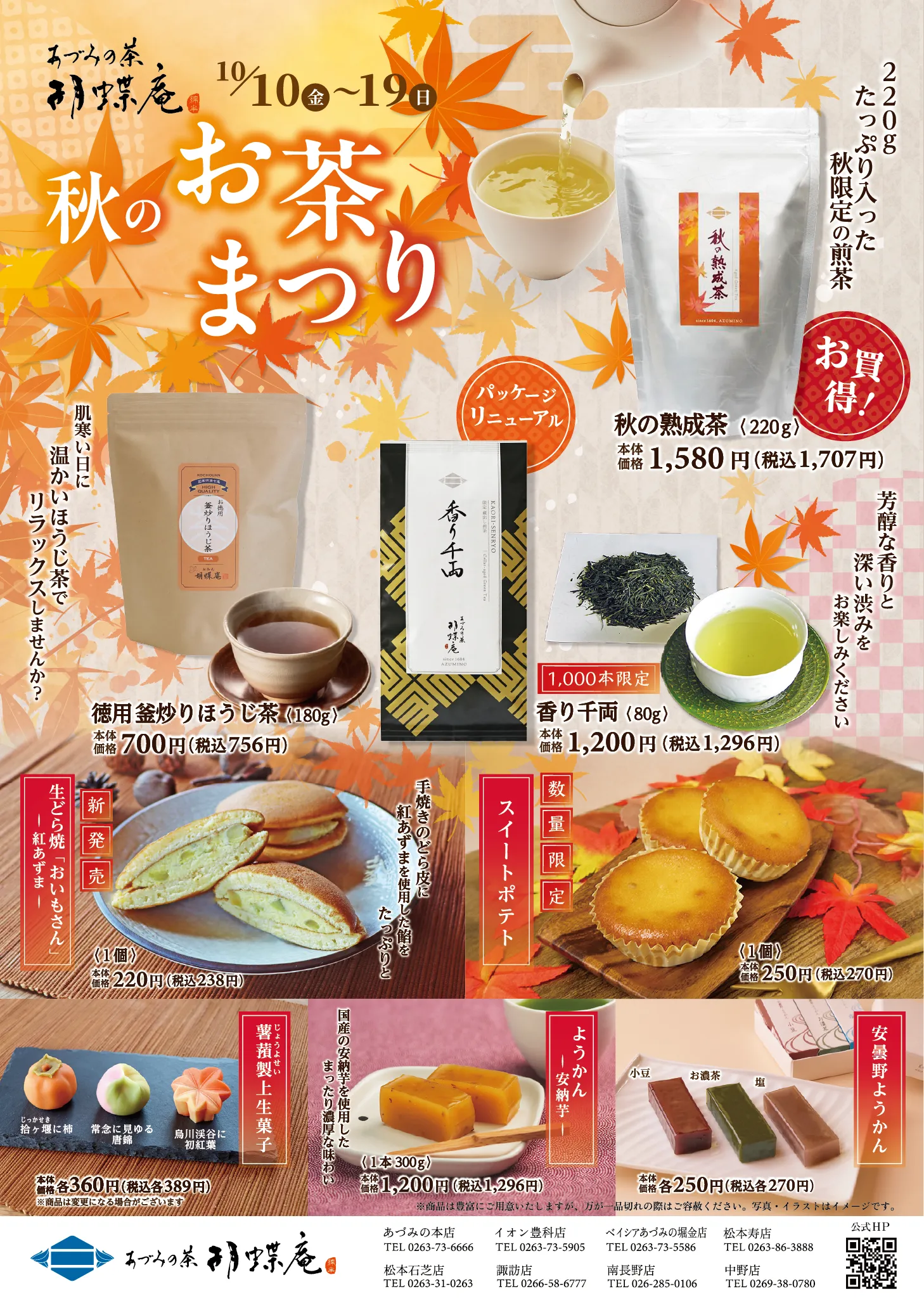 10/10~10/19 秋のお茶まつり開催 【秋のリラックスタイムにも あづみの茶 胡蝶庵へ】 - あづみの茶 胡蝶庵