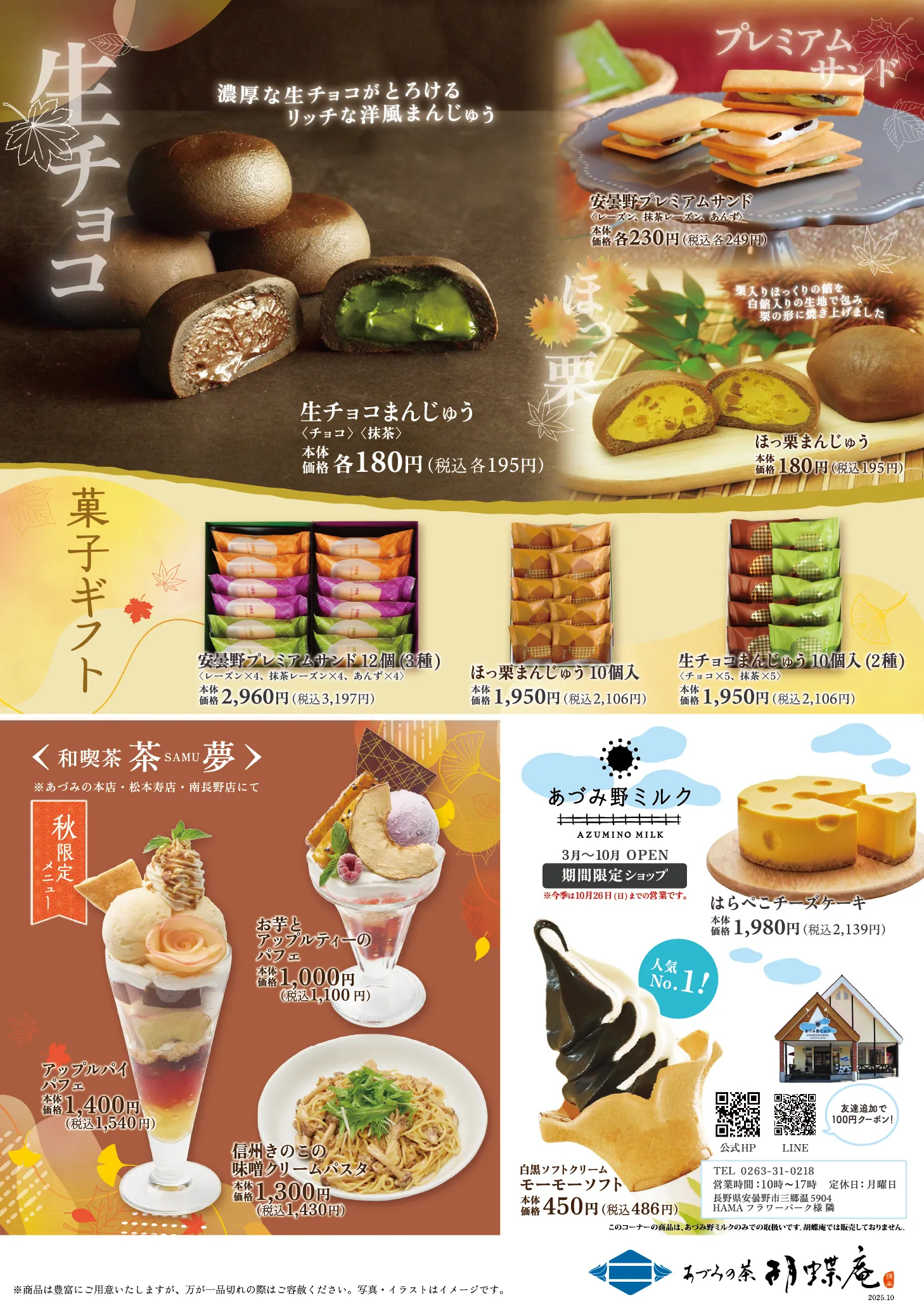 あづみの本店・松本寿店・南長野店の和カフェでは、秋限定メニューを提供中!