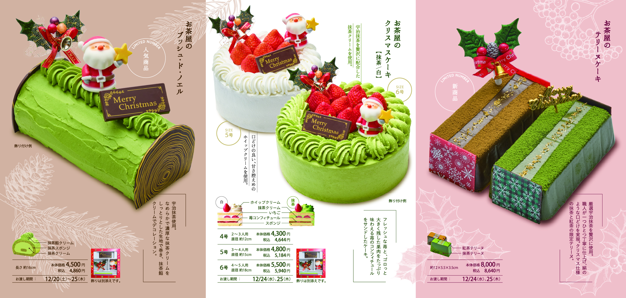 ※お茶屋のクリスマスケーキは12月24日(水)または25日(木)のお渡しとなります。